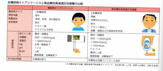 糖尿病性ケトアシドーシスと高血糖性高浸透圧性昏睡の比較